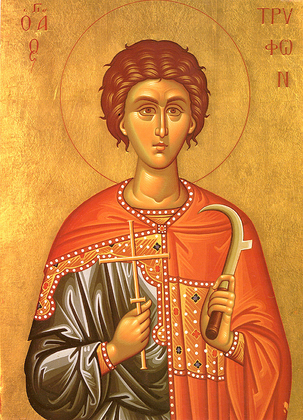 1 Φεβρουαρίου … Άγιος Τρύφων ο Μάρτυρας … Σὺ δὲ Τρύφων τὶ , τὸ ξίφος θνῄσκω φθάσας , Καιρὸς δὲ τίς σου τοῦ τέλους , Νουμηνία , Ἐν Φεβρουαρίοιο Τρύφων πρὸ τομῆς θάνε πρώτῃ ... Τρύφων ἀληθοῦς ἀξίωσον τρ …