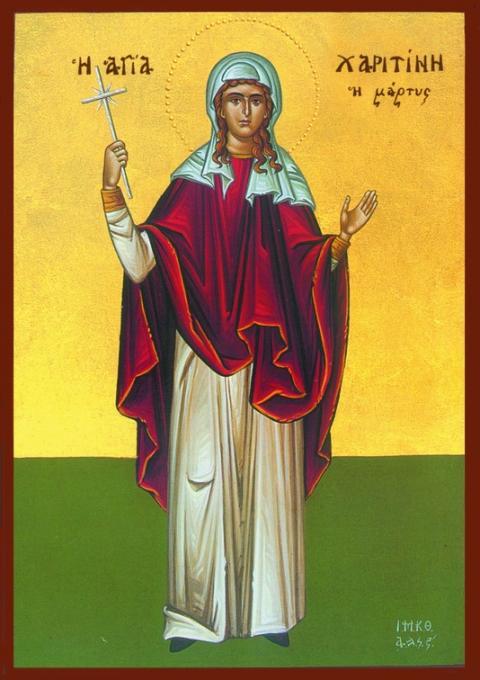 5 Οκτωβρίου … Αγία Χαριτίνη … Ὅπερ δι' εὐχῆς εἶχε , σαρκὸς τὴν λύσιν , Ἰδοὺ δι' εὐχῆς λαμβάνει Χαριτίνη , Πέμπτην Χαριτίνη εἰσέδραμεν ἄστυ Θεοῖο … Η Αγία Χαριτίνη άθλησε επί Διοκλητιανού 284 - 305 μ.Χ …
