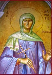 3 Οκτωβρίου ... Αγία Δάμαρις η Αθηναία ... Η Αγία Δάμαρις είναι η πρώτη Αθηναία , που μαζί με Τον Άγιο Διονύσιο Αρεοπαγίτη , Πίστεψαν στο κήρυγμα Του Αποστόλου Παύλου το 52 μ.Χ. ... Το όνομα Της Αναφέ …