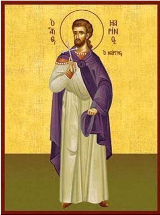 16 Δεκεμβρίου … Άγιος Μαρίνος … Κάραν Μαρῖνος εὐτρεπίζει τῷ ξίφει , Ἧς ὁ στέφανος εὐπρεπὴς ἐκ Κυρίου … Ο Άγιος Μαρίνος Έλαβε το Μαρτυρικό Στεφάνι τον 3ο μ.Χ. Αιώνα , Γεννήθηκε και μεγάλωσε στη Ρώμη … …
