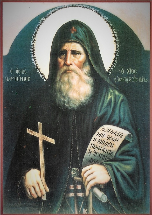 8 Δεκεμβρίου … Όσιος Παρθένιος ο εν Χίω … Ο Όσιος Παρθένιος καταγόταν από το χωριό Δαφνώνας ... Σε νεαρή ηλικία αρραβωνιάσθηκε και ασχολήθηκε με το Εμπόριο μεταξύ Χίου , Σμύρνης και Κωνσταντινούπολης …