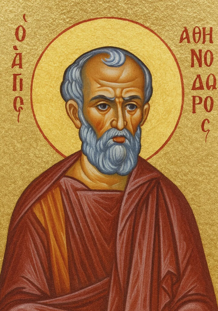 7 Δεκεμβρίου … Άγιος Αθηνόδωρος … Ο Άγιος Αθηνόδωρος καταγόταν από την Μεσοποταμία , έζησε την εποχή του Αυτοκράτορα Διοκλητιανού ... Θαυμαστό το ψυχικό σθένος με το οποίο υπέφερε τα φρικτά βασανιστήρ …