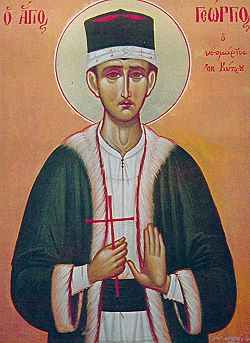 23 Απριλίου … Άγιος Γεώργιος ο Κύπριος , ο Νεομάρτυρας … Γεώργιος νυν τω Γεωργίω άμα , Nέος παλαιώ συνετάχθη ενθάδε … Ο Άγιος Νεομάρτυρας Γεώργιος καταγόταν από τη Κύπρο … Αναχώρησε από τη πατρίδα του …