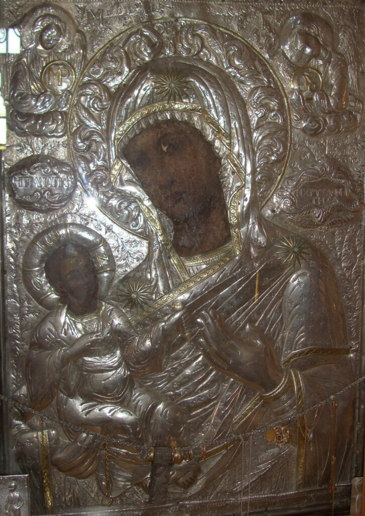 20 Απριλίου ... Σύναξη Της Παναγίας Χρυσαφίτισσας στην Μονεμβασία … Ἧκε θαυμαστῶς ἀπὸ Χρυσάφων πάλαι , Τῇ Μονεμβασίᾳ ἡ Εἰκών σου Κόρη ... Νοτιοανατολικώς του Ιερού Ναού Του Ελκομένου Χριστού , εν Μονε …