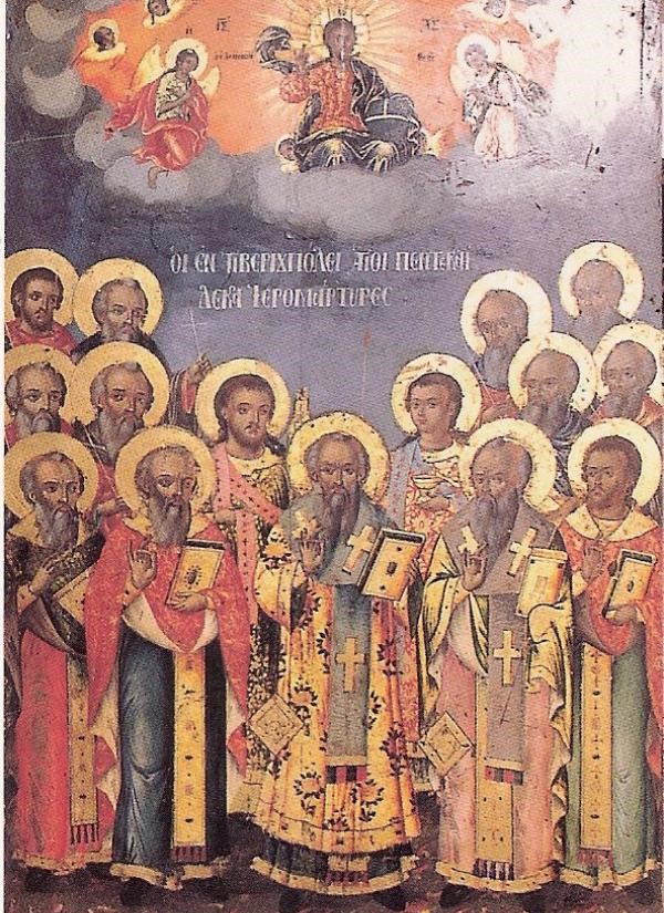 Νέον στήριγμα Ὀρθοδοξίας , νεοκόσμητον ἄνθος ἁγνείας , Νικομηδείας Ἀνθίμου συνώνυμος τῶν ἀρετῶν τε ἐκείνου ὁμότροπος , νέων Ὁσίων σφραγίς καί ἀγλάισμα , Πάτερ Ἄνθιμε , τῆς Χίου πάσης τό καύχημα , Χριστόν τόν Θεόν ἱκέτευε , δωρήσασθε ἡμῖν τό μέγα ἔλεος …….
